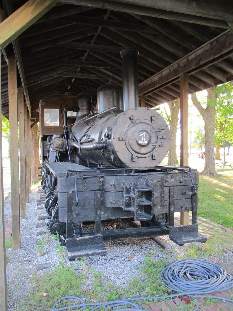 An old locomotive that was on display at the park across the street from the train station and mural.