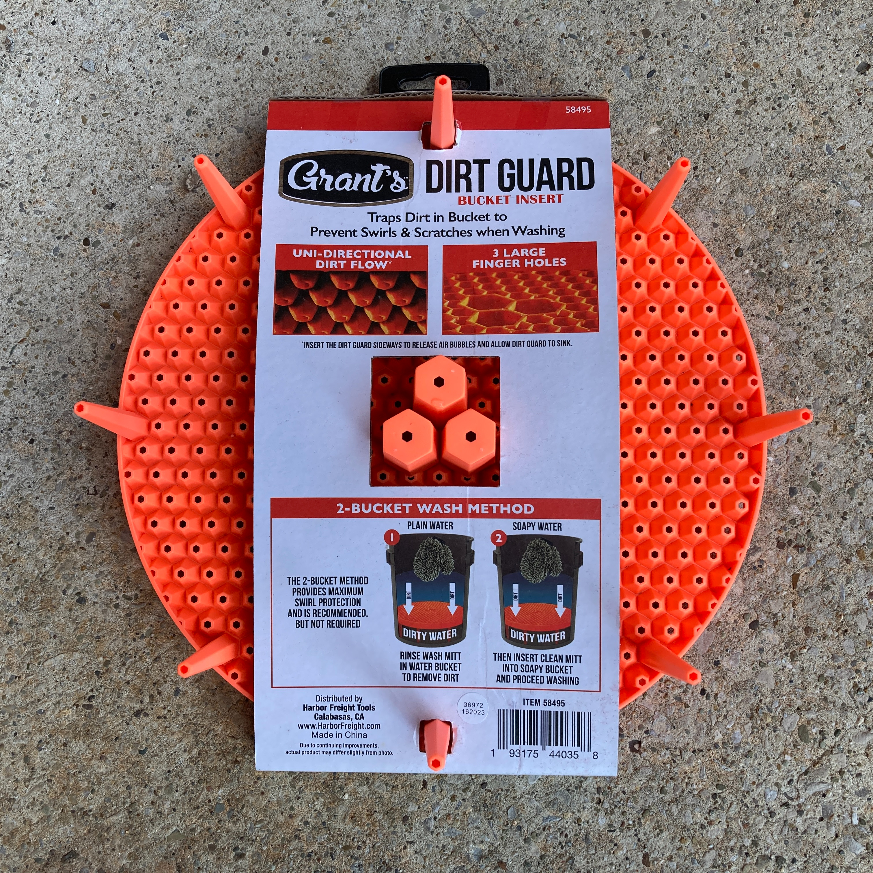 The day I bought the Grant’s-brand Auto Detailing Dirt Guard at Harbor Freight, I was casually walking around the store after having dropped my car off to get an oil change. After buying it, I made a stop on my walk back to the shop to get lunch and got asked by three people along what exactly the neon orange plastic thing was for. I told them it was for car washing. When they asked if it worked, I responded, “Well, we’re going to find out.”