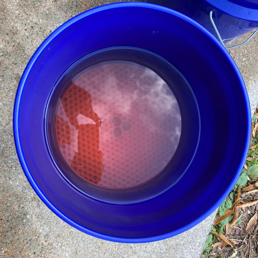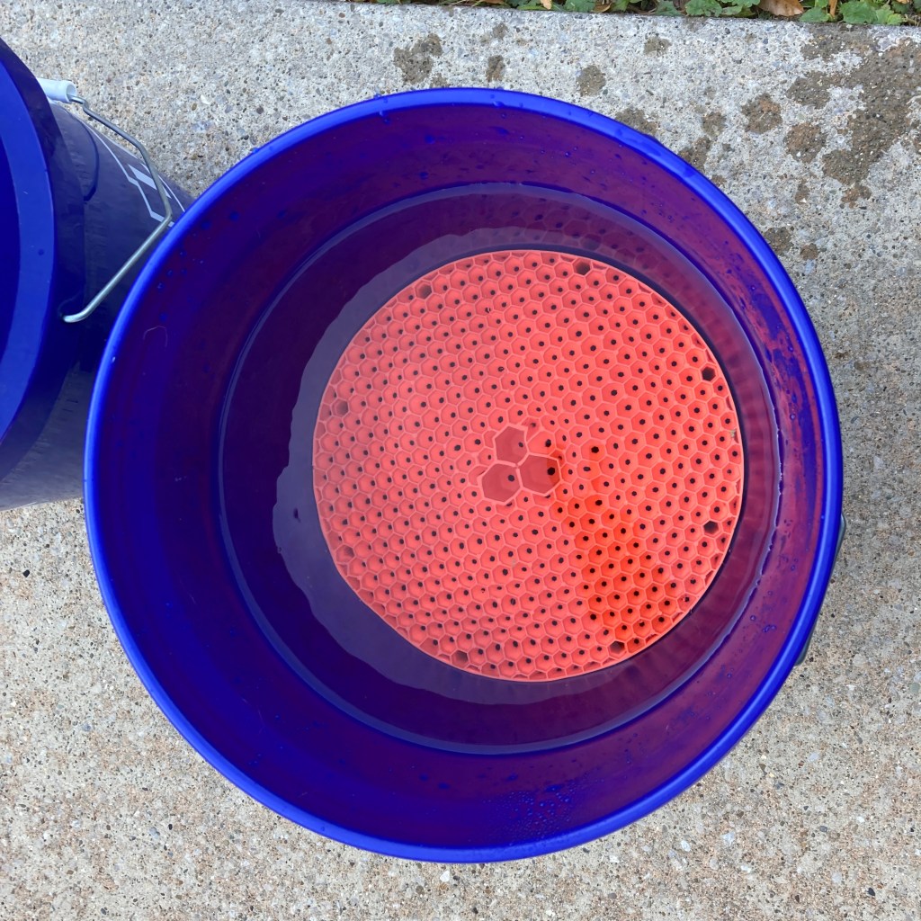 The directions recommend using two dirt guards – one in a soapy water (wash) bucket and another in a clean water (rinse) bucket. Since I just had one, I decided to use it in my soapy water bucket. This made it a little more difficult to get videos of the results, as I had to wait for the thick top layer of bubbles to dissipate.