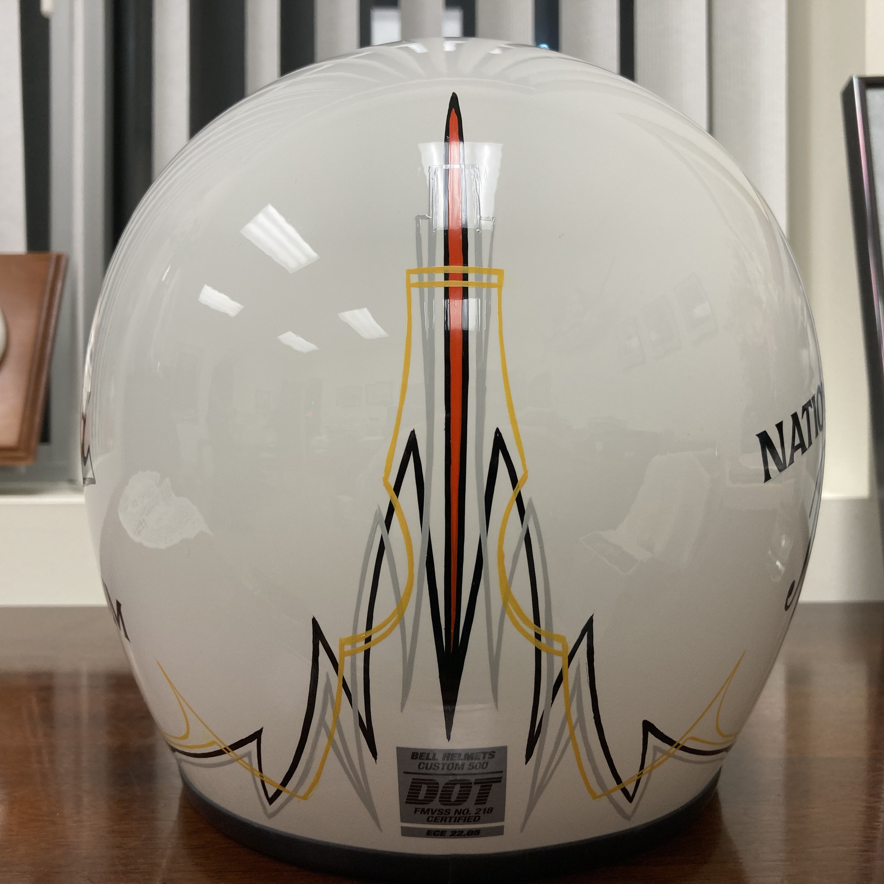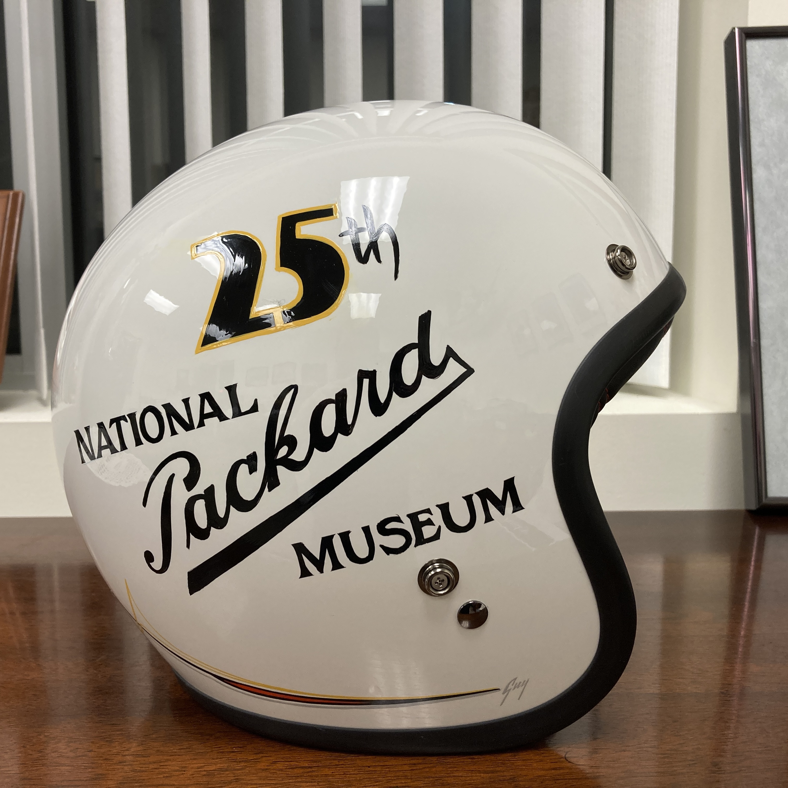 A custom-painted motorcycle helmet to commemorate the exhibit – which included pinstriping my Youngstown motorcycle pinstriper Guy Shively – was auctioned off near the end of the gala.